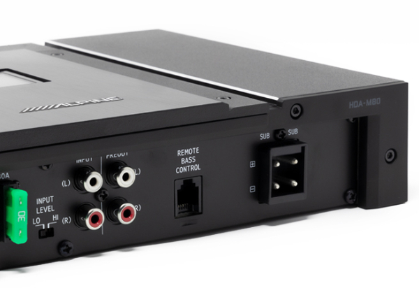 The HDA- M80 features Alpine’s quick-connect power and speaker connectors for quick and safe installation. The one-sided terminal layout and top-panel sound controls give the user quick access to controls on the amplifier.