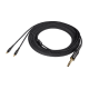 The headphones also feature A2DC (Audio Designed Detachable Coaxial) jacks for secure connection to the two included 3.0 m (9.8') detachable cables. One cable has a 6.3 mm (1/4") gold-plated stereo plug for use with standard audio equipment. The other cable features a 4-pin XLRM balanced connector for use with the latest high-fidelity equipment to achieve better channel separation.