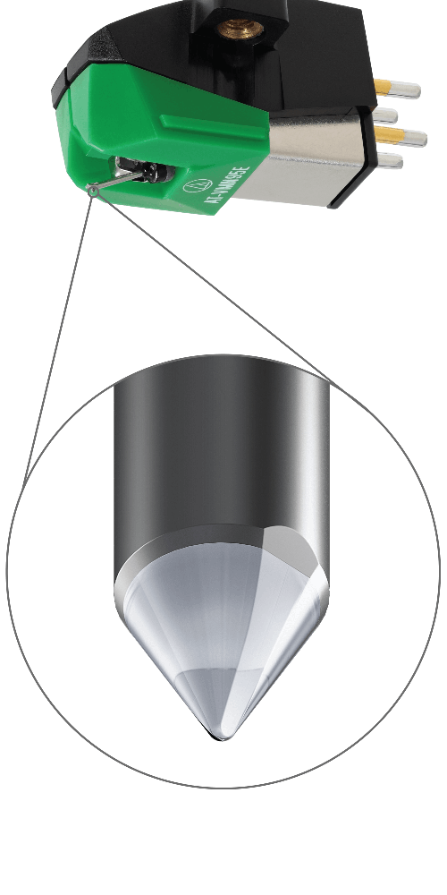This VM95 Series cartridge with 0.3 x 0.7 mil elliptical stylus fits half-inch mount turntables. The cartridge’s special coil design delivers a powerful output level of 4.0 mV. It also offers excellent channel separation and low distortion for outstanding tonal quality. The durable, low-resonance housing includes threaded inserts that enable the cartridge to be mounted to the headshell with just two screws – no nuts required. And since all VM95 Series share the same body, the stylus can be replaced with any of the six interchangeable AT-VMN95 replacement styli.