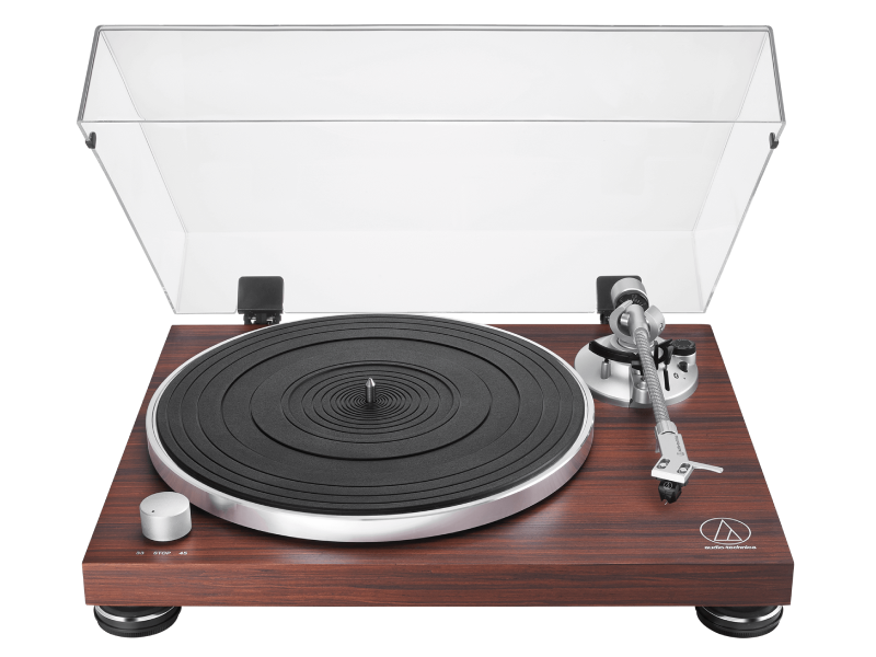 Audio-Technica's AT-LPW50BT-RW wireless turntable provides optimal high-fidelity audio reproduction with the option of wired or Bluetooth listening. The manual record player's stunning rosewood-finished veneer adds to the turntable's refined style, and also dampens low-frequency acoustic feedback to ensure you experience crystal clear, uninterrupted sound.