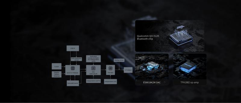 The carefully designed “core” foundation of the BR13’s HiFi audio architecture – the Qualcomm QCC5125 Bluetooth chip, ES9018K2M DAC, and TPA1882 op-amp – gives you the freedom to listen to high-quality audio whenever and however you want.