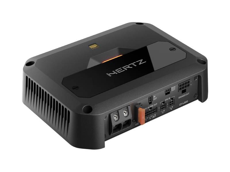 Raise your sound quality bar with the Hertz CENTO POWER CP 4.800, featuring Hi-Res Audio certification for a frequency response from 10 Hz to 41 kHz, delivering sound quality that captures every nuance of your music. This model combines a high power-to-size ratio with an efficiency greater than 85%, encapsulated in a durable aluminum diecast case for top-tier performance and a stylish appearance. This four-channel amplifier combines a high power-to-size ratio with a durable aluminum diecast case, providing top-tier performance and a stylish look. Its full Plug & Play connections ensure easy installation, while the advanced crossover filters and bass boost options allow for tailored sound customization. It is ideal for audiophiles seeking a blend of functionality and sleek design in their car audio system.