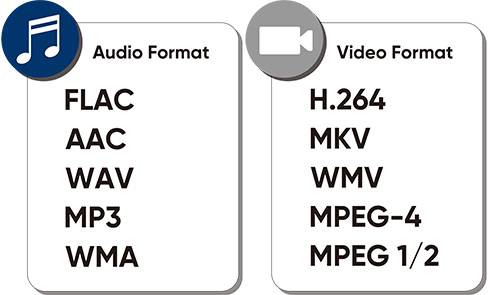 | Audio Decoder | MP3/ WMA/ WAV/ AAC/ FLAC |