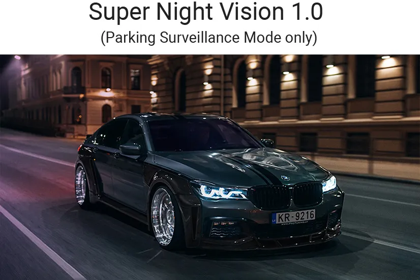 Reduce the dash cam’s power consumption to prolong surveillance duration while in Parking mode, and save footage triggered by impacts only.