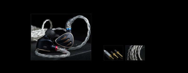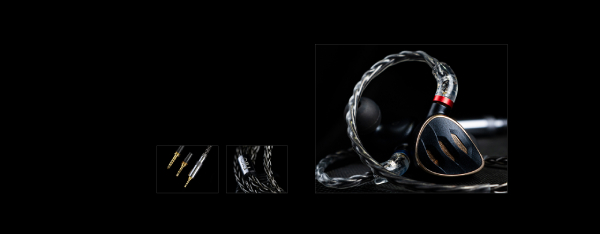 Included is a cable made of high-purity silver-plated monocrystalline copper, with 19 strands of 8 wires each for a total of 152 wires. The wires are braided in Litz style and individually isolated to greatly improve the transmission efficiency of high-frequency signals for enhanced treble resolution. The cable sheath is made of transparent, environmentally-friendly German TPU to give the cable a vivid, lustrous appearance. The cable also features interchangeable 2.5/3.5/4.4mm plugs via a twist-lock system.