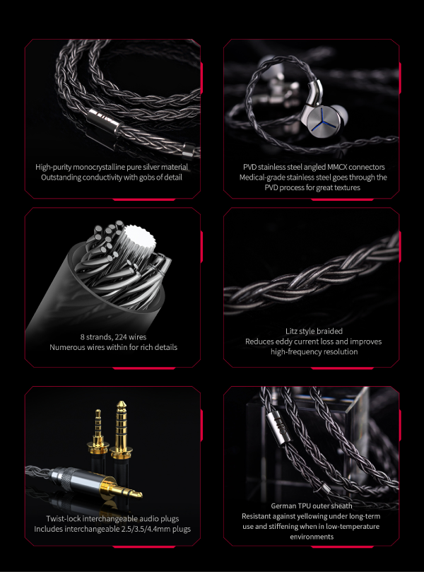 FiiO High Purity Pure Silver Swappable Plug Earphone Cable - LC-RD Pro
