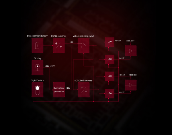 The 5-stage audio circuit features 20 LDOs and a 470mF high-capacity ultra-low ESR supercapacitor in order to provide endless reserves of power in order to maintain stable, high-quality audio at all times.