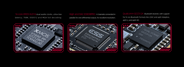 | Hardware solution | DAC: ES9038Pro ,USB: XMOS XU316,AMP:THX_AAA_788+*2, BT:QCC5124 |