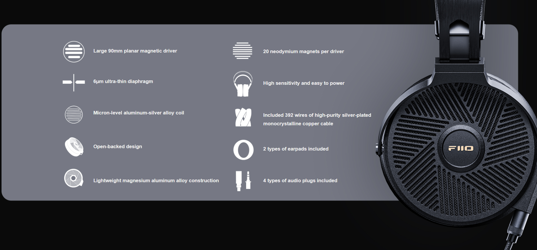 To achieve its great sound, the FT5 features a large 90mm planar magnetic driver with 20 magnets on a single side of each driver. To further reach its max potential, the FT5 also contains a specially-designed open-backed acoustic structure. The rear of the driver housing is carefully designed to act as a sound wave baffle to isolate the sound waves in the front and rear of the driver housing. The grille of the FT5 is scientifically designed to control and precisely accelerate the air flow when the driver is moving. This not only allows the FT5 to have treble resolution unmatched by dynamic driver headphones, but also allows it to have a wide and vast soundstage to better immerse you in the symphony.