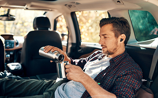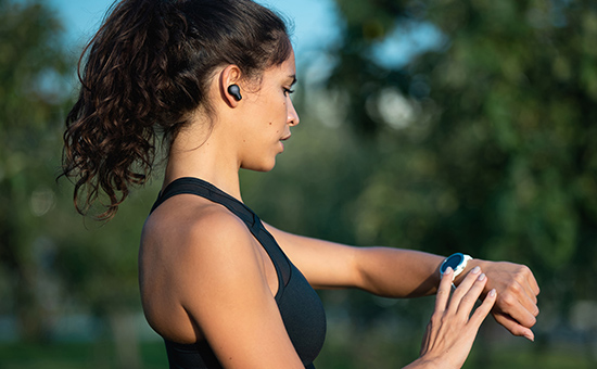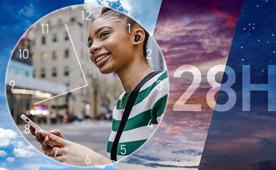 Enjoy your music for up to 28 hours with the built-in battery and charging case. Now you always have your favorite music with you even on long trips.