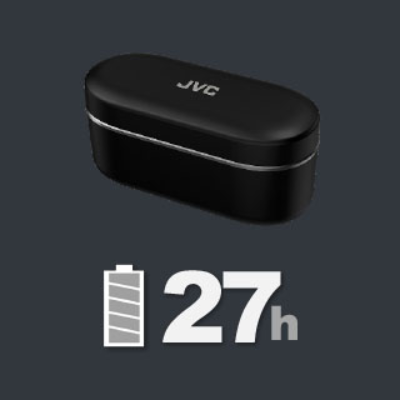 Up to 9 hours* of continuous playback is possible with the earphone unit alone and up to 27 hours* with the charging case. A 10-minute charge allows 90 minutes of playback.