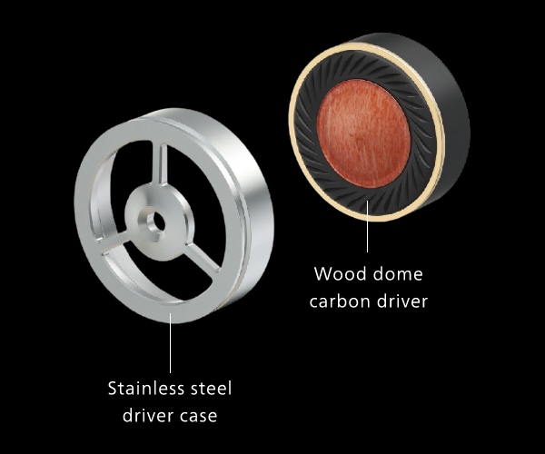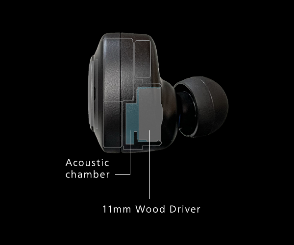 The large 11mm diameter driver unit makes full use of the air inside, and the wood diaphragm produces a high-purity sound, resulting in ample reproduction from low to high frequencies and spatial expression.