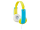 Kid's headphones with low volume specification for safe listening and a wide headband for customizing with included stickers