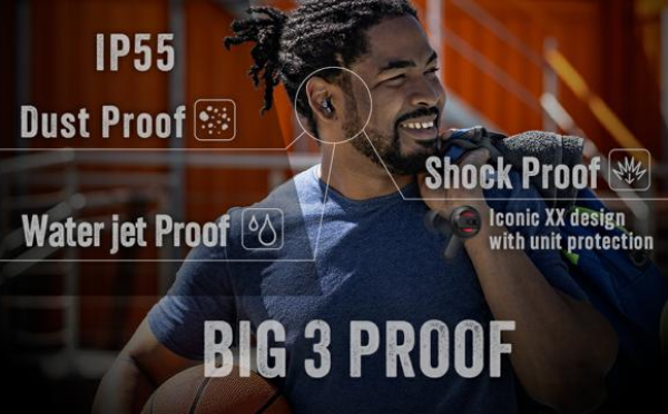 Experience the big 3 proof, featuring the shock proof with rubber protector and boasting IP55 for Water jet proof and dust proof*.