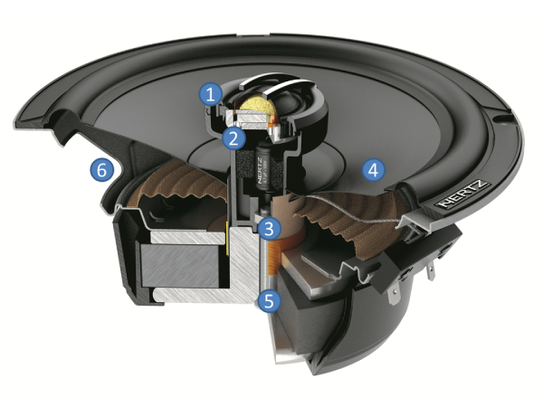 The CPX 165 car audio coaxial provides the thrill of listening to the Hertz sound even when the vehicle does not allow the installation of a two-way kit. The Tetolon dome tweeter and Neodymium magnet is provided with off-axis dispersion features and exceptional frequency extension for a detailed, airy sound. Radial Venting System technology ensures unparalleled cooling of the coil thanks to the eight holes at the base of the engine that allow air exchange with the tweeter support. This acts as a rear camera, sized for low Fs, to ensure a natural mid range and allow a low frequency crossover point with the woofer. The pressed-paper cone and the butyl rubber suspension offer an extended low frequency response and an impressive punch. The Mille-inspired design basket features a dampened and protective rubber coated magnet. The grille, available as optional, is made up of a durable high resistance ABS frame and metallic mesh protection.