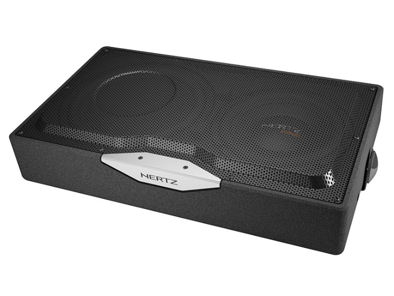 The EBX F20.5 flat car audio subwoofer box has been designed to ensure installation versatility, while still maintaining superior low frequency performance; an enclosure without compromise. The use of a long-excursion 200 mm woofer combined with a 250 mm passive radiator reflex system made it possible to create a “small” subwoofer capable of providing huge output with excellent musicality. The 15/18 mm MDF enclosure is reinforced with internal bracing and covered with thick moquette to reduce losses in the system. The compact size, the refined cosmetic finish along with the reversible logo makes the EBX range the “solution” enclosure for any installation.