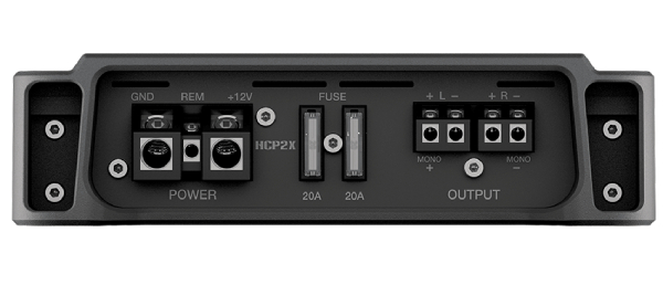 HCP 2X is a brand new stereo car audio amplifier, 800W amplifier, designed to expand or modify with maximum easiness the factory system: featuring pre-amplified (Pre-In) inputs as well as high-level (Speaker-In) inputs, for connection with any head units.