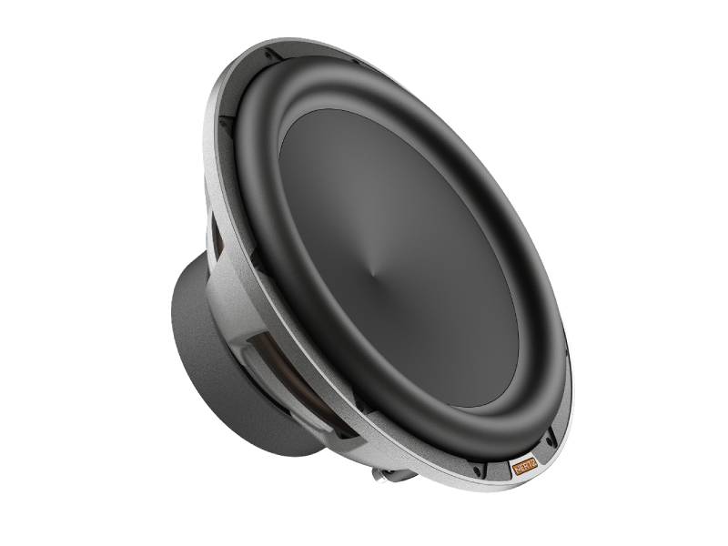 Outstanding performance in a compact size, this is the target of Mille Pro car audio subwoofers. On the strength of its know-how acquired with Mille Legend, the R&D team has optimized the production process to offer the “Hertz Sound Experience” to a wider audience using part of the technologies and materials of the flagship line. The MP 300 D2.3 cone is made by pressing paper pulp with the injection of mineral powders, the same construction technique used for Legend. The V-cone® profile increases rigidity, allowing the cone to function like a piston. Surround materials consist of high-purity IIR-butyl rubber. Like the Legend ML2000.3 and ML2500.3, the Mille PRO subwoofers are built with Boundary Free Surround technology allowing for a greater emission surface with equal diameter, generating higher sound pressure. The compact 6-spoke aluminum alloy anti-resonant basket is the same as the top model ML 2500.3 and contributes to the subwoofer’s mechanical damping, being absolutely transparent to the sound. The 65-mm 4-layer voice coil is higher than 60 mm and wound in a TIL-P former, thus delivering high linear displacement. The 2 Ω + 2 Ω DVC impedance configuration improves versatility to match any amplifier system. The air cooling and decompression system avoids the need for a centre hole on the bottom plate with three advantages: