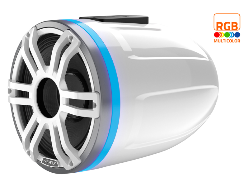 Hertz 8 Inch Marine Compression Tower Speakers with RGB Led Lighting in White - HTX 8H S-FL-SW