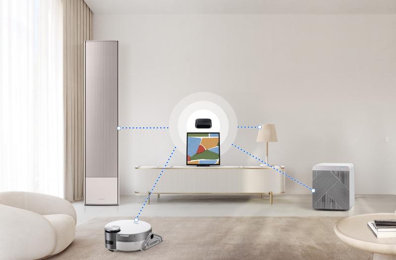 Connect your sound device to SmartThings App via Wi-Fi that allows you to control sound setting and group play on your mobile device. You can also access voice assistant and easily play your favourite music.