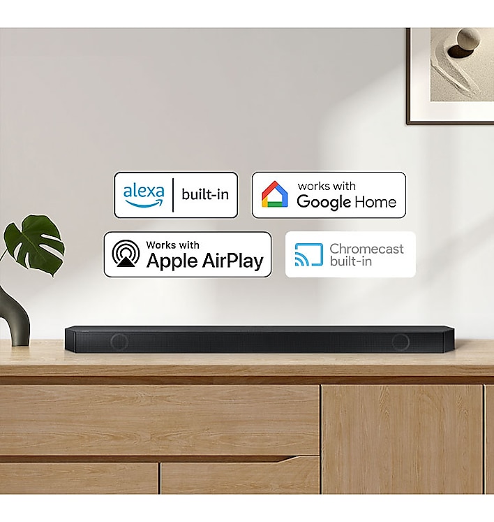 Connect your devices and control everything with our soundbar that integrates your favorite voice assistants and smart services like Built-in Alexa, Chromecast, Airplay 2 and more.
