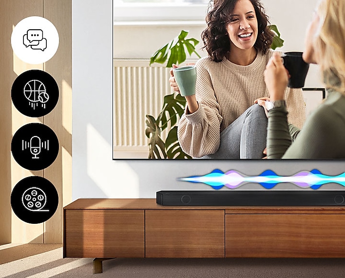 Ensure dialogue and commentary are not drowned outso you never miss an important moment. Active Voice Analyzer breaks down room noise so that onscreen voices are always optimized.