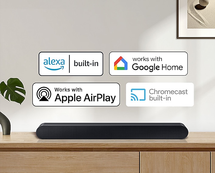 Connect your devices and control everything with our soundbar that integrates your favorite voice assistants and smart services like Built-in Alexa, Chromecast, Airplay and more.