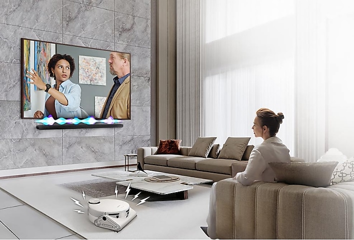 Ensure dialogue and commentary are not drowned outso you never miss an important moment. Active Voice Analyzer breaks down room noise so that onscreen voices are always optimized.