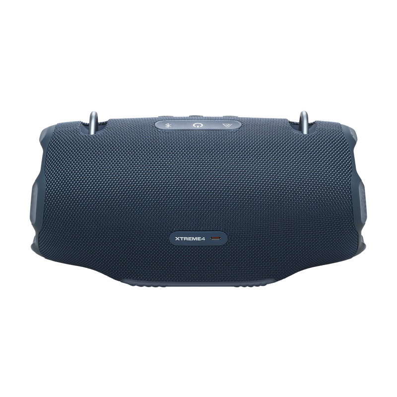 It's time to live loud! The JBL Xtreme 4 portable waterproof speaker delivers next-level massive JBL Pro Sound with amazing dynamics, even at top volume, thanks to two powerful woofers and two tweeters. Dual pumping JBL passive radiators give you deeper bass that moves you. Want to take your music outside? The handy shoulder strap makes it easy, while the rugged rubber bumpers and IP67 waterproof and dustproof rating mean that a sudden downpour or a dunk in the lake won't stop the fun. When it's time to create an even bigger audio experience, pair two Xtreme 4s for stereo sound. Or for your next party, use Auracast to connect the Xtreme 4 with any compatible JBL portable speakers, so your friends lounging poolside will vibe to the same playlist as the ones chatting indoors. 24 hours of playtime and a convenient power bank for your device mean you won't have to recharge until morning. All this, plus it's made with recycled plastic and recycled fabric. The JBL Xtreme 4 brings thrilling sound with you—everywhere.