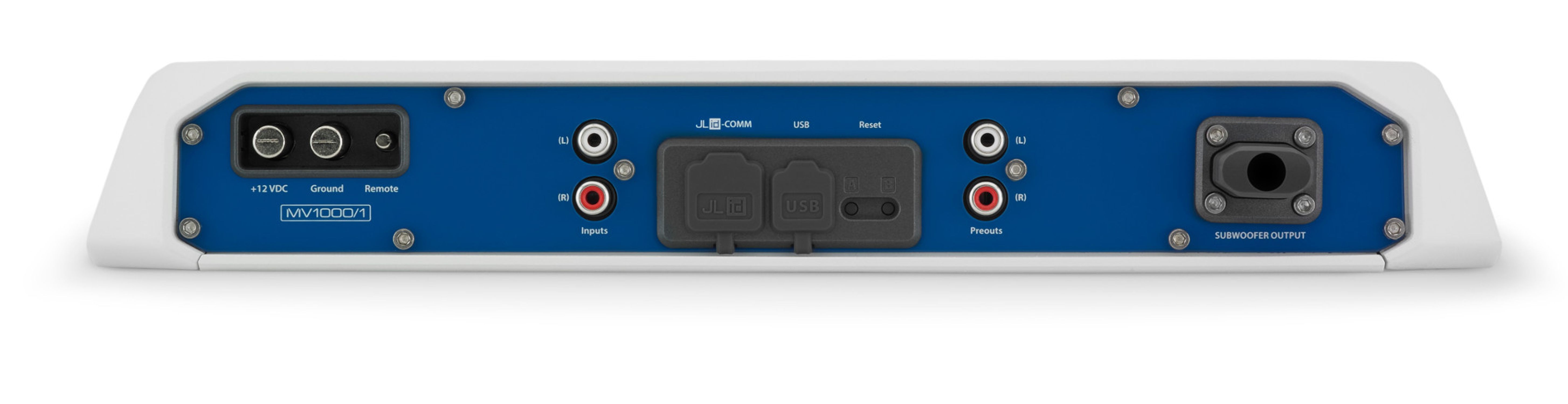 All MV monoblock amplifiers are specifically designed to receive their input signals from the pre-outs of a full-range MVi amplifier, from which they will also receive all signal processing. For this reason, MV monoblock amplifiers have no onboard signal processing, other than a basic input sensitivity setting.