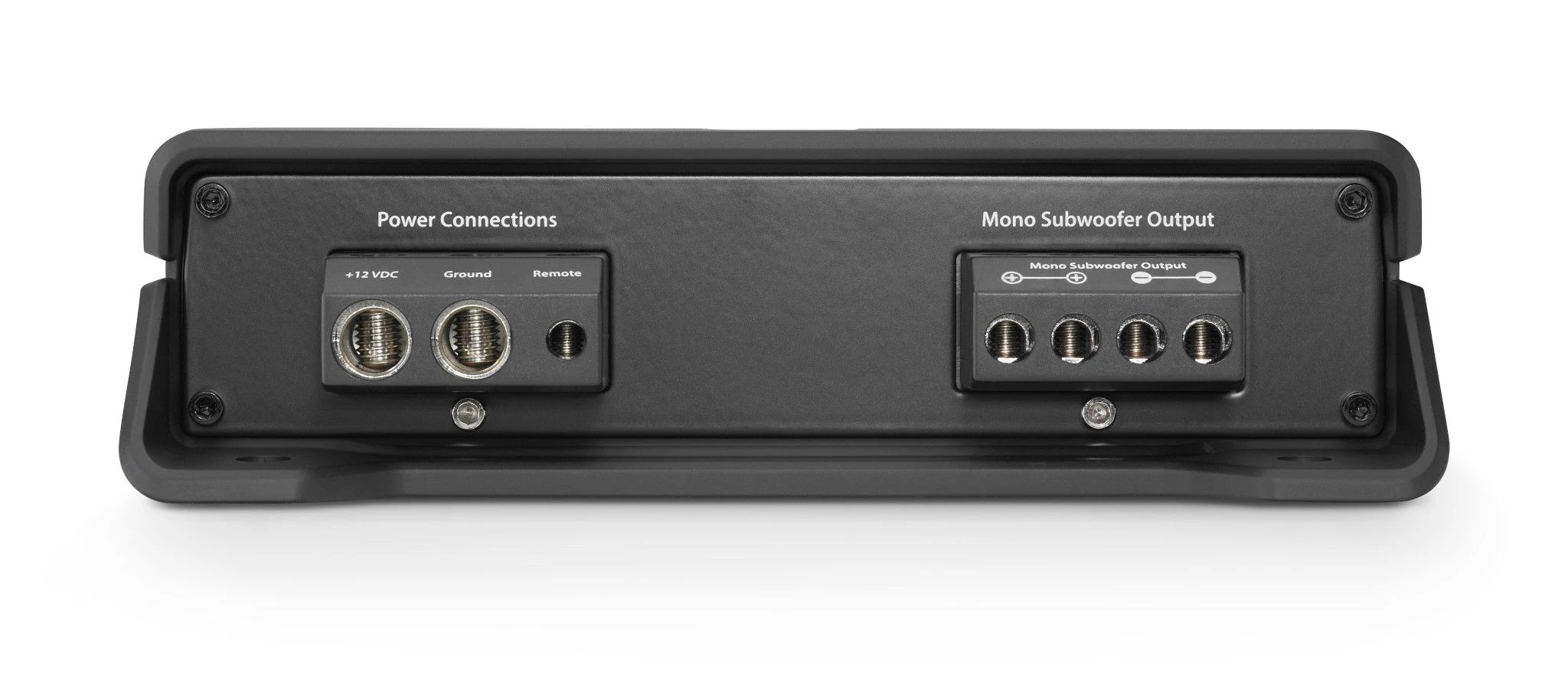 Designed to produce a healthy 250 watts into 2 ohms (14.4V, 1% THD), the JD250/1 amplifier is a great solution for powering subwoofers in a cost-conscious system. Our proprietary NexD™ switching technology delivers large amounts of real-world power output with excellent efficiency and ultra-low distortion.