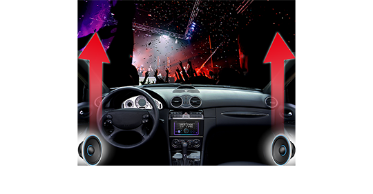 Space Enhancement is a virtual surround technology using 2 speakers. Simply select the vehicle size, and the receiver automatically adjusts the sound effectively.