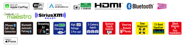 Digital Media Receiver featuring 6.8-inch Capacitive Touch Control Monitor (6.8" WVGA) / Wireless Apple CarPlay / Wireless Android Auto / USB Mirroring for Android Phones / iDatalink Maestro Ready / HDMI Input / Bluetooth® / 13-Band EQ / Short Chassis