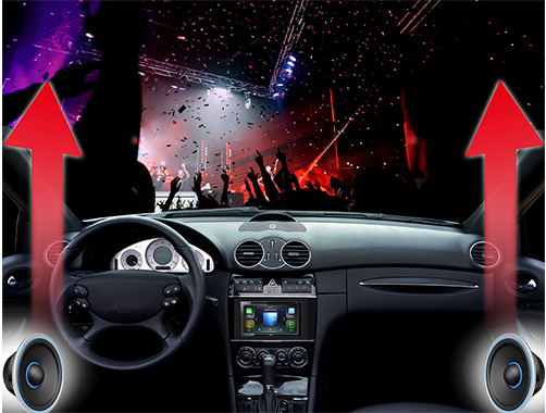 Space Enhancement is a virtual surround technology using 2 speakers. Just select the vehicle size, and the receiver automatically adjusts the sound effectively.