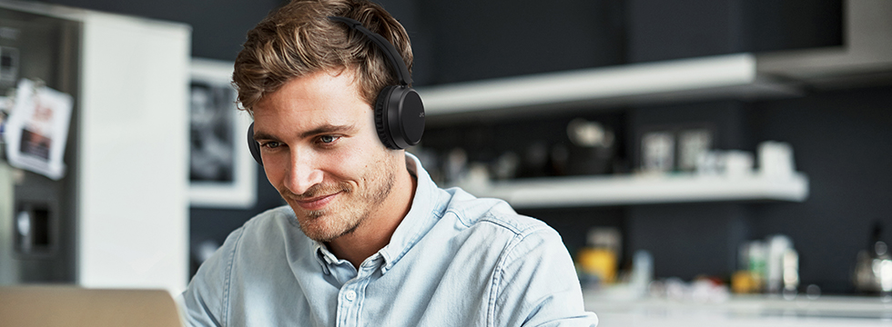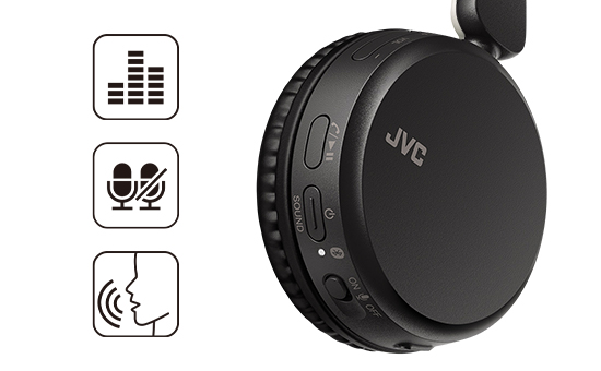 Flat foldable, wireless headphones with Powerful Deep Bass sound and full telework functionality.