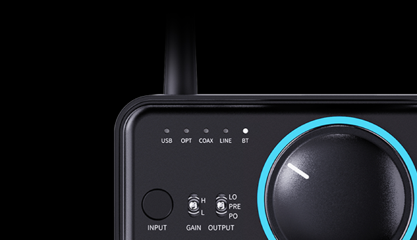The Bluetooth version of the K7 is available. It uses the QCC5124 Bluetooth chip*, supporting high-definition Bluetooth formats like LDAC/aptX HD/aptX Adaptive. When using the K7 BT, switch the input mode to Bluetooth, and you will acquire low-latency Bluetooth transmission and hi-res sound quality. Also, the app control* helps to further enhance your wireless experience.