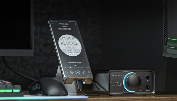 One touch of a handy key allows you to switch between 3 output modes (for use with headphones, with speakers, or use as a DAC).