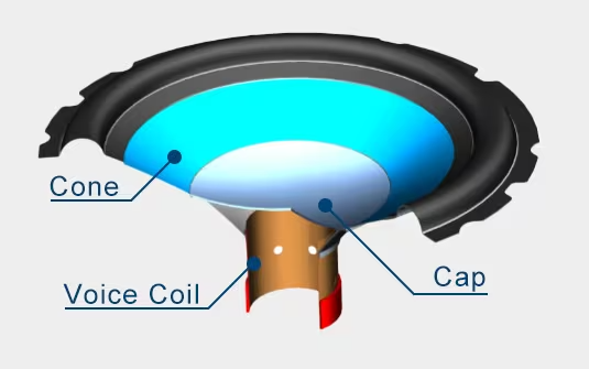 Thick 0.7mm Cone, 1.4mm Cap and Φ45.5mm Voice coil ensure sufficient strength and reduction of unnecessary noise.