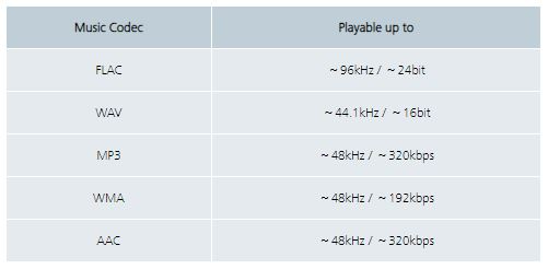 | FLAC Decode | FLAC file (Up to 24bit/96kHz) |