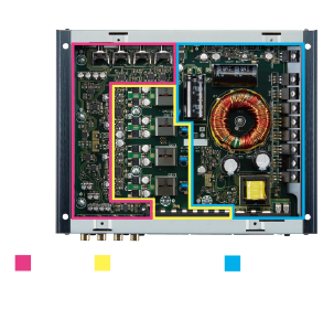 The noise reduction system employs a special layout that separates the analog circuit, digital amplifier circuit and power supply circuit. This keeps interference between the circuits to a minimum, decreasing noise and thereby achieving high performance and sound quality.