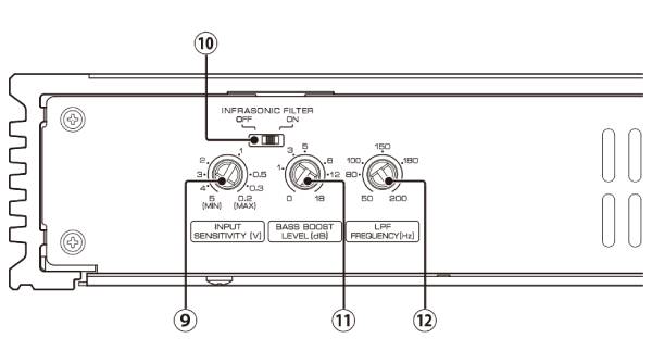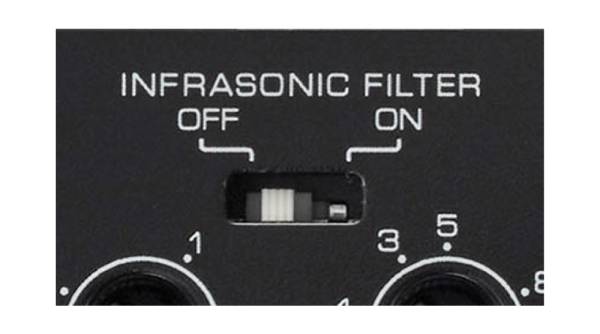 When Infrasonic Filter Switch is turned on,the amplifier cuts off the low frequencies below 25Hz, which effects to make the amplifier’s power supply and output devices more efficient with clear bass sound.