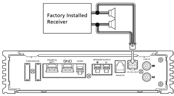Speaker Level Input Harness is included to connect to speaker wires from factory installed receivers.