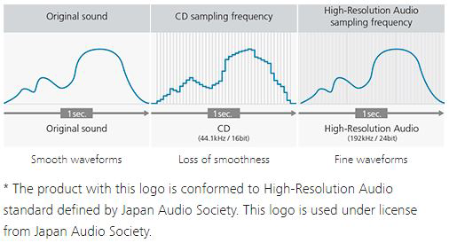 High-Resolution Audio is high-quality sound that far exceeds CD standards, and can play 192kHz / 24Bit sampling DSP. It captures and beautifully expresses details and nuances from the ultra-high to low frequencies.