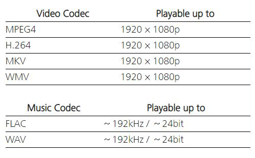 | Audio Decoder | MP3 / WMA / AAC / WAV / FLAC / Vorbis |