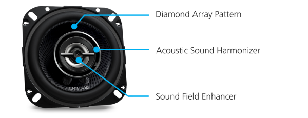 This unique shape of the tweeter creates strong frontward sound as well as a wider sound field in 5kHz and higher frequencies.