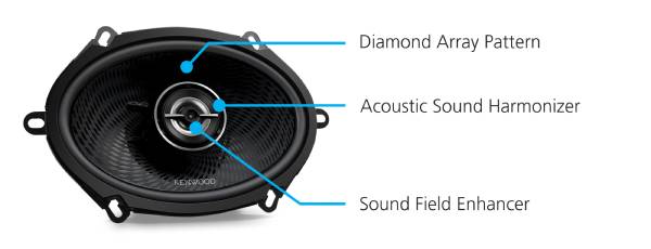This unique shape of the tweeter creates strong frontward sound as well as a wider sound field in 5kHz and higher frequencies.