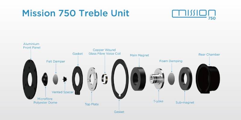 High-frequency reproduction is provided by the 28mm, lightweight, coated microfibre dome, as found in the Mission 700 model, and likewise, placed below that bass/midrange driver.