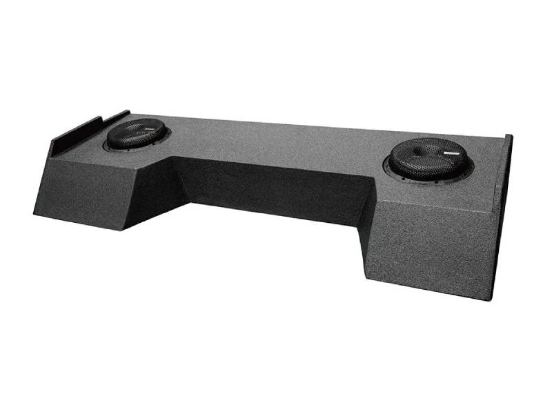 Bring the massive output of dual 8″ MOJO Mini subwoofers to your Ram crew cab truck. These direct fit OEM vehicle specific enclosures were designed to fit perfectly in all 2019 & newer Ram Crew Cab trucks (does not fit Mega or Classic Cab versions). This loaded enclosure is perfect for anyone looking for a vehicle specific box that is already loaded with subwoofers. No need for custom fabrication, these boxes fit perfectly and were tuned specifically for maximum performance in your Ram crew cab truck. Adding subwoofers to your Ram truck has never been easier with MOJO mini direct fit Ram enclosures.