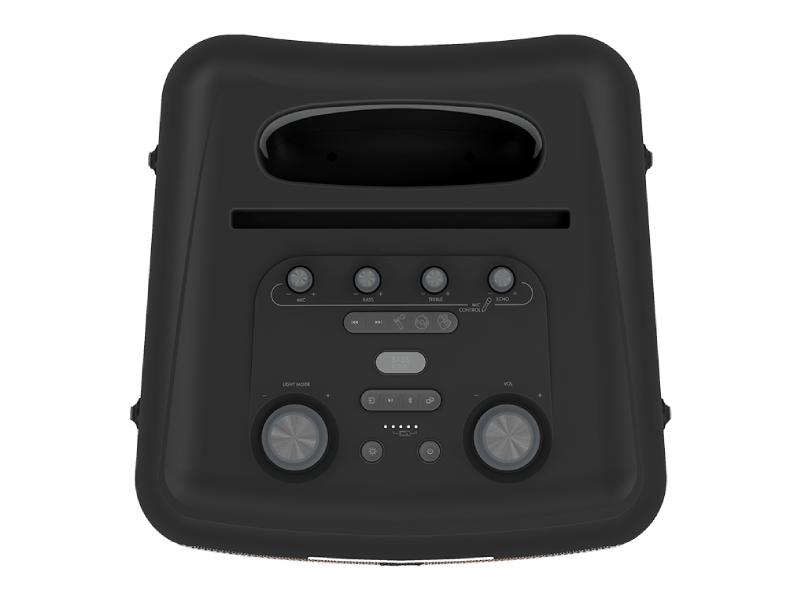 Thanks to built-in microphone and ¼” instrument input, your new Klipsch Music City Party Speaker is your new go-to for karaoke nights and jam sessions. Further customize your experience with bass, treble, and echo adjustments.