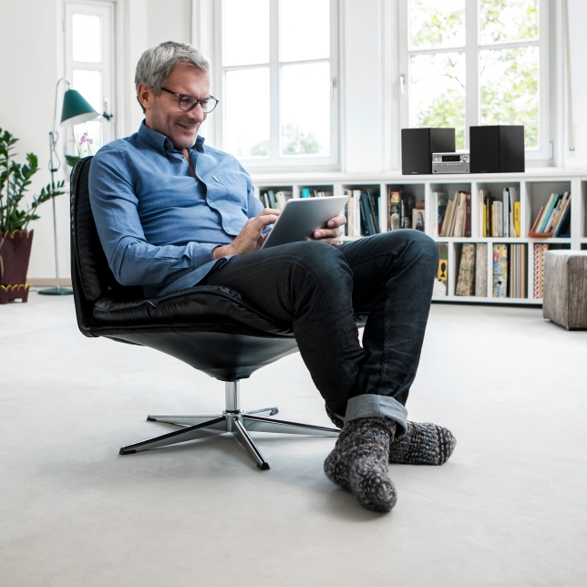 Our premium system featuring a Technics JENO Engine Hi-Res amplifier to play Hi-Res music from USB or via Chromecast built-in™ or AirPlay 2 also covers CD and FM.